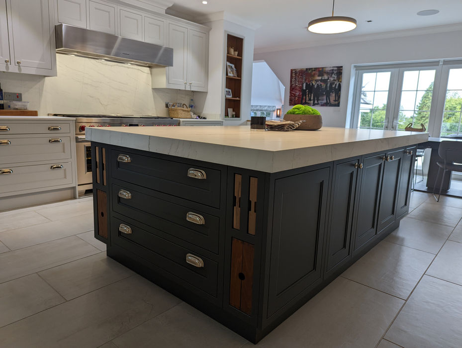 Kitchen Door Style/Colour: In-frame shaker style, smooth painted in Light Grey & Graphite