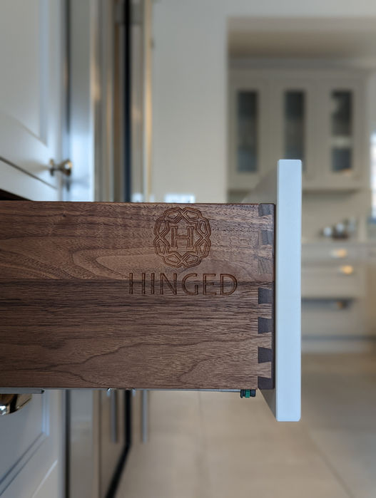 Hinged collaborated with Kingsley Developments on the open-plan kitchen/diner and home bar, which flow from one to the other. Given their proximity, the furniture in each room could be different but complementary finishes were a necessity.